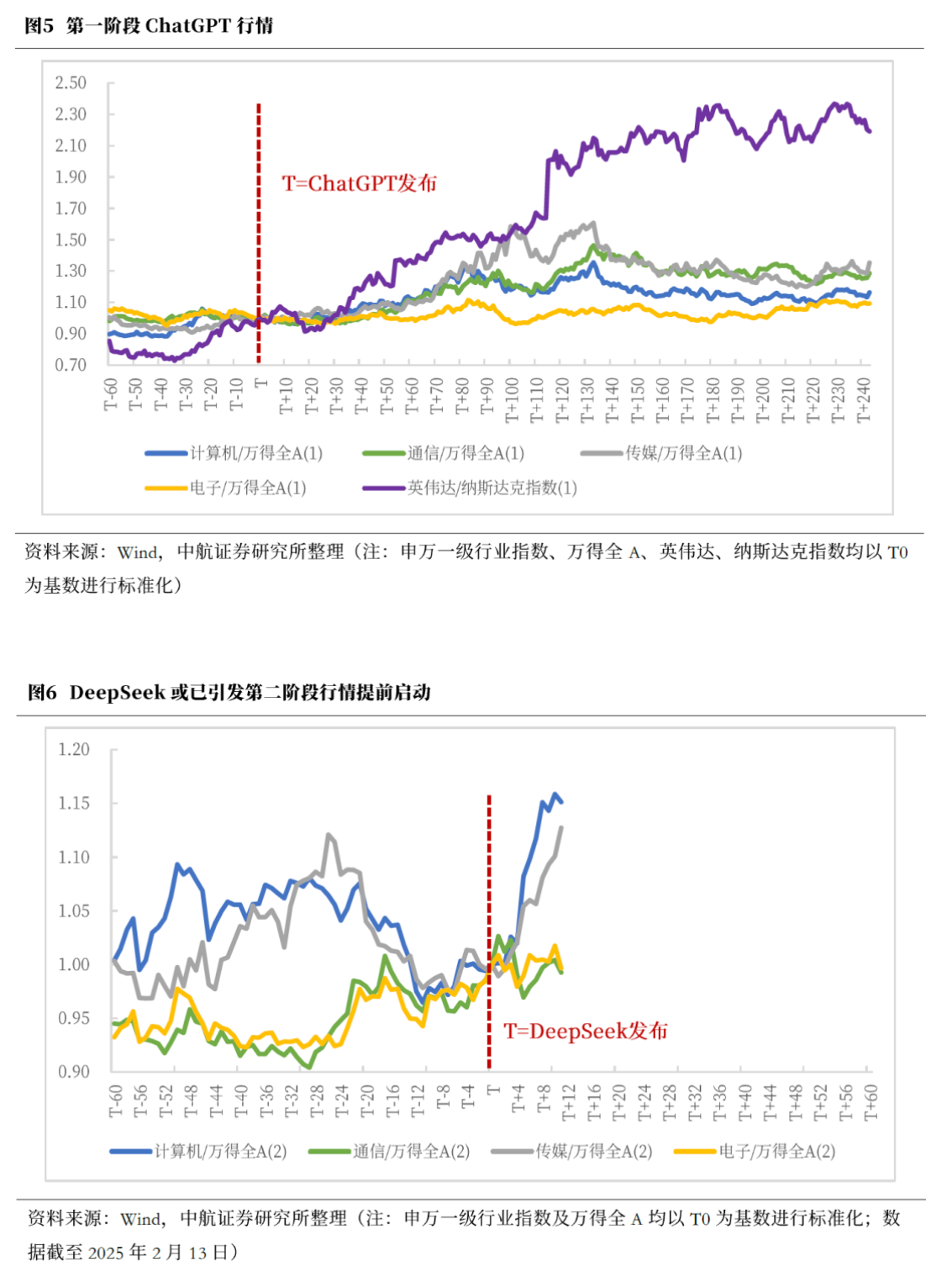 参考前两轮科技行情,第二阶段与第一阶段相比持续时间更长、斜率更高。DeepSeek有望带动国内产业进入快速扩张期。相较于海外映射的主题投资,应用场景和业绩转化带来的基本面改善预期对于市场风险偏好和投资者交易热情的提升更为坚实。因此,我们预计本轮科技行情第二阶段虽已提前启动,但尚未进入主升浪。