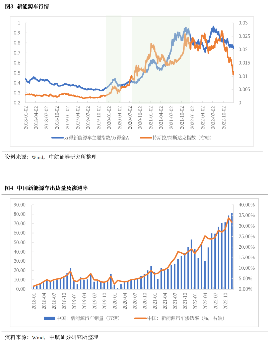 2019年新能源产业的标志性事件为特斯拉在上海开工建设超级工厂并于年底成功交付国产Model3,特斯拉估价快速拉升。此外,2019年12月3日工信部等起草了《新能源汽车产业发展规划(2021-2035年)》(征求意见稿)支持新能源车产业发展。海外新能源龙头的技术革新落地,在中国建厂并快速投产,同时国内政策充分支持新能源车产业,让资本市场看到商业模式的可行性,资本市场交易海外映射。基本面看,2019年新能源车销量和渗透率一度下行,因此该阶段市场实际是新能源车的主题投资,交易电动化率提升后国内新能源车行业规模具备宽广空间的预期。